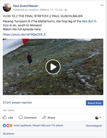 I aimed to publish them at 10am each morning for consistency but sometimes this was impossible due to slow internet speeds. As far as I'm aware, the main Red Bull X-Alps website had an 'Athlete's Feed' that automatically displayed the vlogs too and there was a dedicated page on Redbull.com, also showing them.